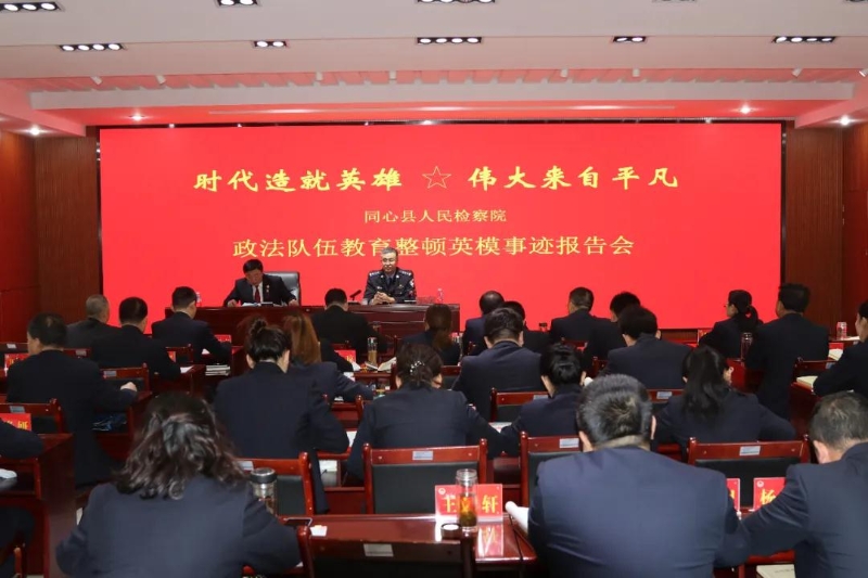 2021年3月20日,为抓好抓实政法队伍教育整顿学习教育环节“五项教育”,树立学习英模、崇尚英模、争当英模的良好风尚,用身边人感动身边人、用身边人激励身边人、用身边人引领身边人,不断激励全体检察人员勇于担当服务保障经济社会高质量发展新使命,竭力展现统筹推进过硬基层检察院建设新作为。同心县人民检察院邀请同心县公安局党委委员、副局长、全国特级优秀人民警察张治中同志和同心县人民检察院院党组成员、第一检察部主任、全区十佳优秀公诉人、个人二等功获得者王晓亮同志为作英模事迹报告。