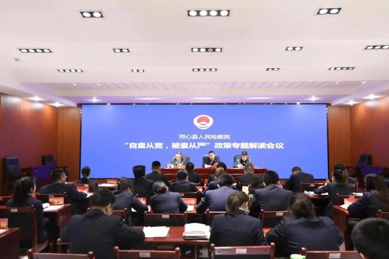 2021年4月16日,按照中央、区市县党委和上级检察机关政法队伍教育整顿查纠整改环节安排部署、工作要求,为扎实做好政法队伍教育整顿查纠整改环节各项工作,强化政策引导,明确“自查从宽、被查从严”的政策界限和使用情形,同心县人民检察院召开“自查从宽、被查从严”政策专题解读会。中共同心县委常委、纪委书记、监委主任王钧同志、县纪委常委、监委委员马军同志出席会议。
