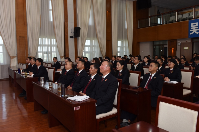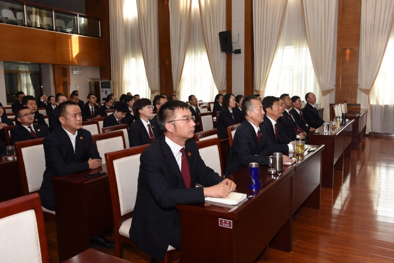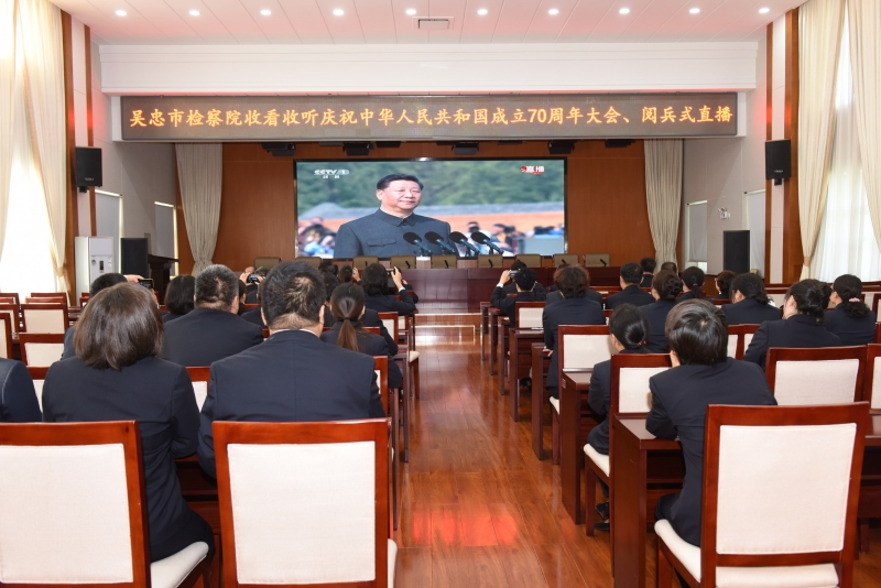 10月1日上午10:00在院六楼会议室,吴忠市人民检察院认真组织全体干警收看收听中华人民共和国成立70周年大会、阅兵和群众游行实况。党组书记、检察长马国武、班子成员及全体干警共70人观看了此次庆祝实况。