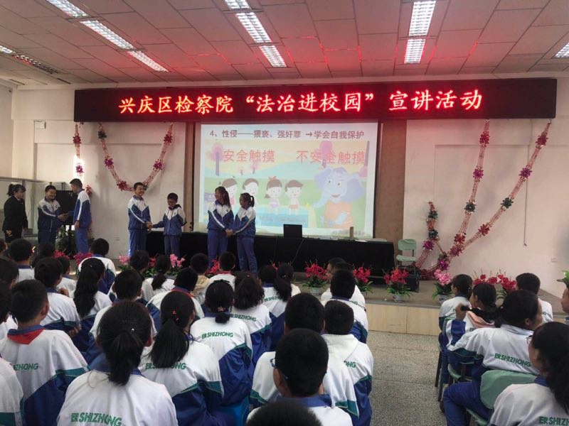 活动中,检察官借助PPT和动画短片的形式,让同学们了解了什么是检察工作,进而引入了未成年人比较常见的法律罪名,如故意伤害罪、盗窃罪、寻衅滋事罪等,通过有趣的话语和生动的图片让同学们了解到生活中处处有法律。结合“一号检察建议”的精神,检察官们通过做游戏的方式,与同学们进行互动,带领同学们了解了什么是“安全触摸与不安全触摸”,并通过典型案例向同学们讲述了“早恋”所带来的危害。同时从防拐防骗、抵制校园欺凌、预防性侵害、防范黑恶势力等方面提醒同学们及在场的老师家长注意提高防范意识。