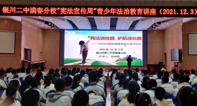 在全国第八个“国家宪法日”来临之际,为进一步弘扬宪法精神,提高学生的自我防范意识,建设法治校园,12月3日下午,兴庆区人民检察院小白杨检察官积极深入银川市第二中学满春分校,开展宪法宣传进校园活动。