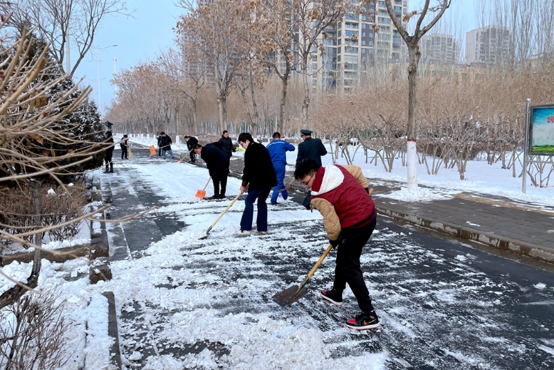 为保障广大人民群众出行安全,在院班子成员的带领下,干警们积极清扫单位内部及周边道路积雪。凛冽的寒风挡不住大家的劳动热情,有的肩扛铁锹,有的手拿扫把,你铲我扫、分工配合、共同努力,高效率将院内积雪清理完毕后,又组织干警对丽景街上海路北向东侧的南北向自行车道、人行道的积雪融冰进行清理,在短时间内就恢复了整洁有序的办公环境、开辟了一条干净的通道,方便了前来办事的群众,保障了过往车辆通行顺畅和干警出行安全。