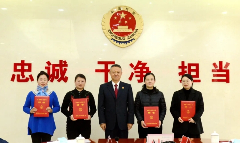 兴庆区人民检察院党组书记、检察长王建军主持聘任仪式,宣读《关于聘任王梦瑶等4名同志为特邀检察官助理的决定》,并为四名特邀检察官助理颁发聘书。