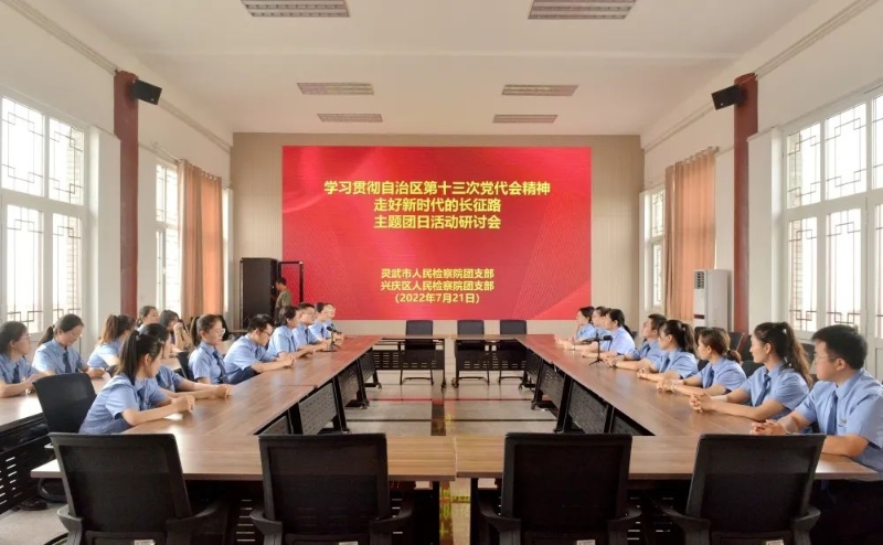 现场交流,共促工作提升。参观结束后,灵武市人民检察院青年干警与我院青年干警就弘扬白芨滩治沙精神及团支部建设等方面进行了座谈交流,座谈气氛轻松热烈,双方团员代表结合自身工作实际分别作了发言。灵武市人民检察院党组成员、副检察长沙晨红表示要继续加强团支部的建设和交流学习,并向全体青年干警分享了白芨滩王有德同志的先进事迹,以此勉励青年干警要脚踏实地,勇于担当时代赋予的检察重任。兴庆区人民检察院党组成员、副检察长马虹表示,此次活动是兴庆院与灵武院两个基层检察机关之间的第一次良好互动,希望两院之间继续加强交流沟通。同时,希望青年干警要以自治区十三次党代会为引领,把从白芨滩学习到的吃苦耐劳、无私奉献的治沙精神结合到检察工作中去,不负青春,不负韶华。