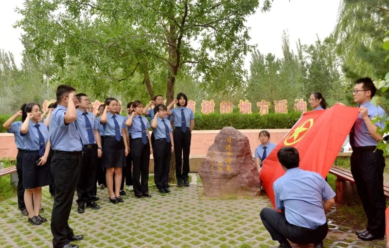 实地观摩,凝聚思想共识。在防沙治沙展览馆,透过展览馆内的一块块展板、一幅幅图片,防沙治沙的艰辛画面在大家的脑海中不断呈现,正是几代治沙人的努力,才书写了从“沙进人退”到“人进沙退”的奇迹。大家真切地感受着白芨滩人民防沙治沙的毅力和决心,品味着科学治沙和水土治理的成果,深受“宁可掉下十斤肉,不让生态落了后”治沙精神的鼓舞。在习近平总书记植树点,全体团员高举右拳面对团旗庄严宣誓,铿锵的誓言激荡人心,进一步激励全体青年干警要不忘初心,永远奋斗,在平凡的岗位上做出不平凡的贡献。