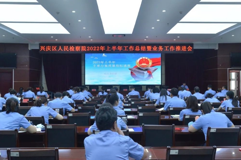 为深入贯彻落实自治区第十三次党代会精神,全面总结盘点上半年各项业务工作开展情况,找准工作效果与预期目标之间的差距,推动各项检察工作迈上新台阶,7月28日,兴庆区人民检察院召开2022年上半年工作总结暨业务工作推进会。院班子成员、全院干警参加了会议。