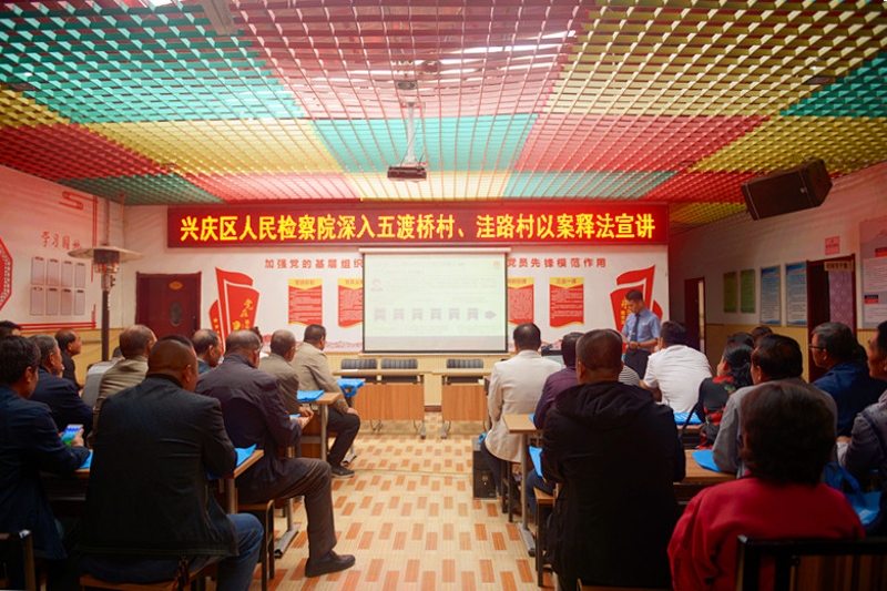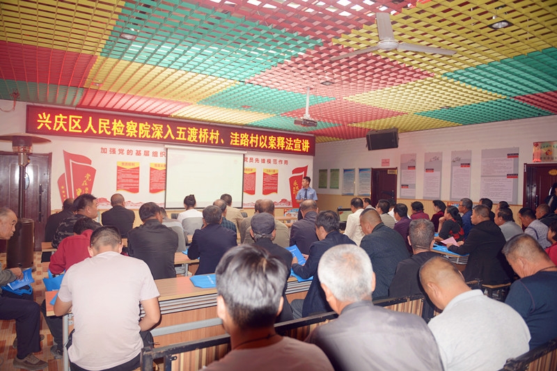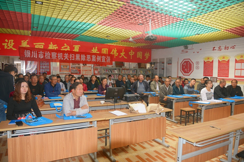 在五渡桥村社区,兴庆区检察院干警向村委干部、党员及群众就当前扫黑除恶专项斗争形势和兴庆区检察院扫黑除恶专项斗争工作开展情况进行了宣传讲解,并结合办理的兴庆区大新镇大新村纳金宝等32人组织、领导、参加黑社会性质组织罪、聚众扰乱社会秩序罪等一案,从犯罪经过、案件办理情况、案件成因及反思教育等方面进行了生动的宣讲,给听众留下了深刻的印象,也让在场的村干部、党员和群众提高对违法犯罪行为的警惕。