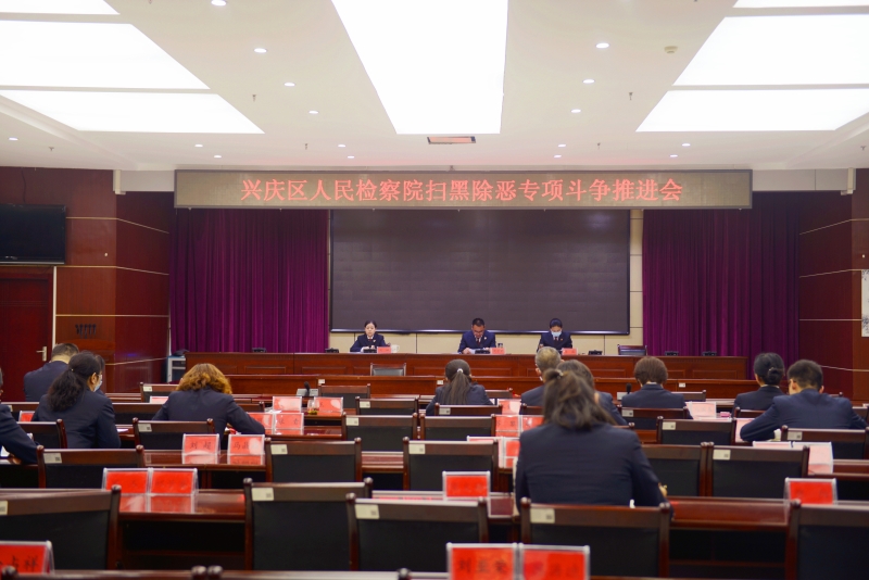 4月15日下午,兴庆区人民检察院召开2020年度第1次扫黑除恶专项斗争推进会,院党组成员、检委会专职委员、各部门负责人及全体干警参加会议。