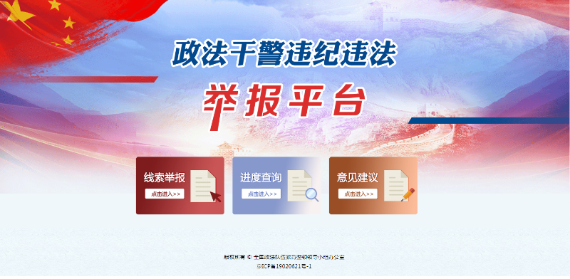 近日,“政法干警违纪违法举报平台”正式上线,用户登录“12337”智能举报平台或者点击中国长安网、中央政法委长安剑微信公众号等链接,即可向全国政法队伍教育整顿办反映政法干警违纪违法问题。
