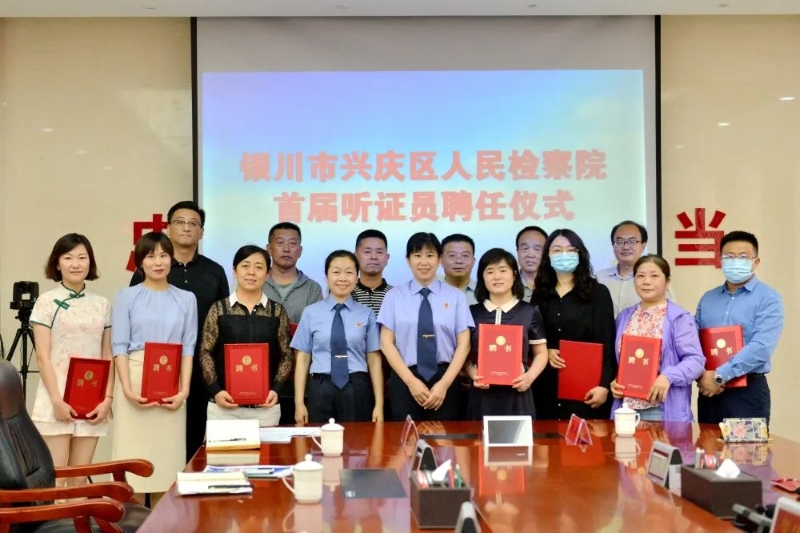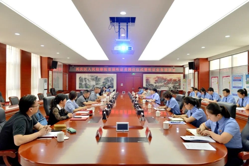 为深化履行法律监督职责,进一步规范和加强人民检察院以听证方式审查办案工作,提升检察听证工作质效,促进司法公开,保障司法公正。兴庆区人民检察院认真贯彻落实最高人民检察院《人民检察院听证员库建设管理指导意见》的决策部署,经推荐、初核、考察、公示等程序组建了检察听证库,党组决定聘请王富军等47名同志为本院首届听证员。6月1日,兴庆区人民检察院举办首届听证员聘任仪式暨听证业务培训会,党组成员、副检察长马虹主持会议。