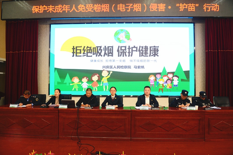 讲座结束后,兴庆区人民检察院联合兴庆区教育局、兴庆区烟草专卖局、银川市市场监督管理局兴庆区分局、银川市公安局兴庆区分局就治理校园周边售烟市场召开座谈会。座谈会上,经过深入探讨并达成共识,五部门共同建立中小学校周边违法经营卷烟电子烟联合执法协作监管长效机制,并对校园周边卷烟电子烟市场联合专项检查作出安排。按照安排,确保对辖区内中小学周边零售户排查覆盖面100%、监管覆盖面100%,有效治理学校周围违规售烟问题,构建学校周边未成年人“零触烟”环境。