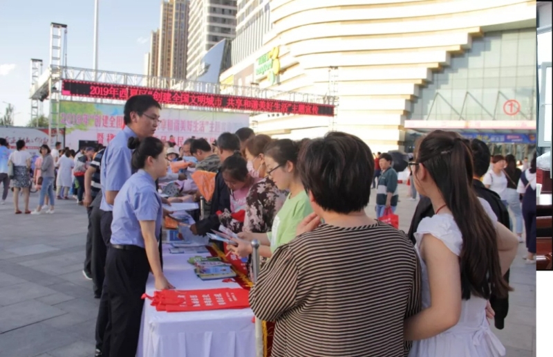 干警通过集中宣传的形式在西夏区万达广场开展以“创建全国文明城市 共享和谐美好生活”为主题的宣传活动