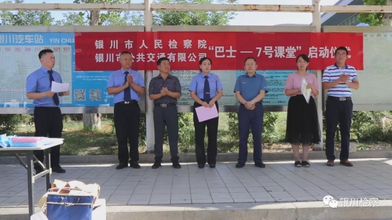 2019年7月25日下午,银川市检察院护航未成年人健康成长“巴士——7号课堂”在银川市长途汽车站公交运输点正式启动。这是银川市检察院借助公交媒体宣传未成年人法治教育,借“智”“惠”民的又一新举措。银川市检察院邀请银川市教育局、银川市关心下一代工作委员会参加了启动仪式。