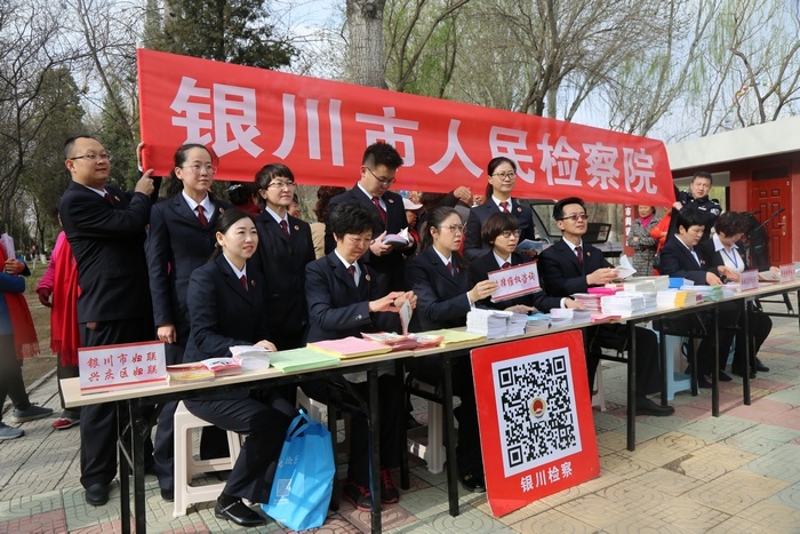 党员干警们通过悬挂横幅、设立咨询台发放宣传资料等形式向市民发放《银川市文明行为促进条例》、《家风》、扫黑除恶反对家庭暴力和护航未成年人健康成长法治教育读本等宣传资料。活动现场,诚邀过往群众扫描并关注“银川检察”微信二维码,引导人民群众关注应用现场受理咨询、举报等相关事务延伸宣传触角对群众有关法律疑问进行耐心解答。据统计活动期间银川市检察院共发放宣传资料200余份受理群众咨询10余人次解答各类法律疑难问题4个。