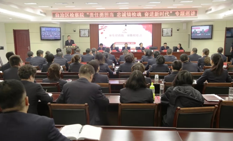 会上,全体党员、干警观看了王有德、李进祯、裘志新等同志先进事迹以及《榜样4》专题片,聆听了“责任勇担当、忠诚铸检魂、奋进新时代”专题演讲。自治区检察机关赴疆工作人员代表张怀才、毛忠林分享了自己援疆工作经历、感悟,自治区检察院优秀青年干警代表任茹等4人讲述了坚守本职、服务群众、爱岗敬业检察人的感人事迹。