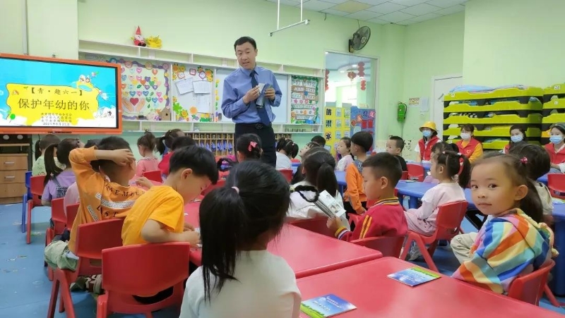 在永宁县卓越幼儿园,永宁县人民检察院未成年人检察官以自己编写的十首顺口溜儿歌、童话小故事、互动问答、情景模拟等方式,围绕孩子们如何守护身体的“小秘密”,遇到坏人、危险的时候如何自护等内容,以生动活泼、寓教于乐的形式向幼儿园的孩子们讲述了未成年人保护法是如何保护孩子们的合法权益。