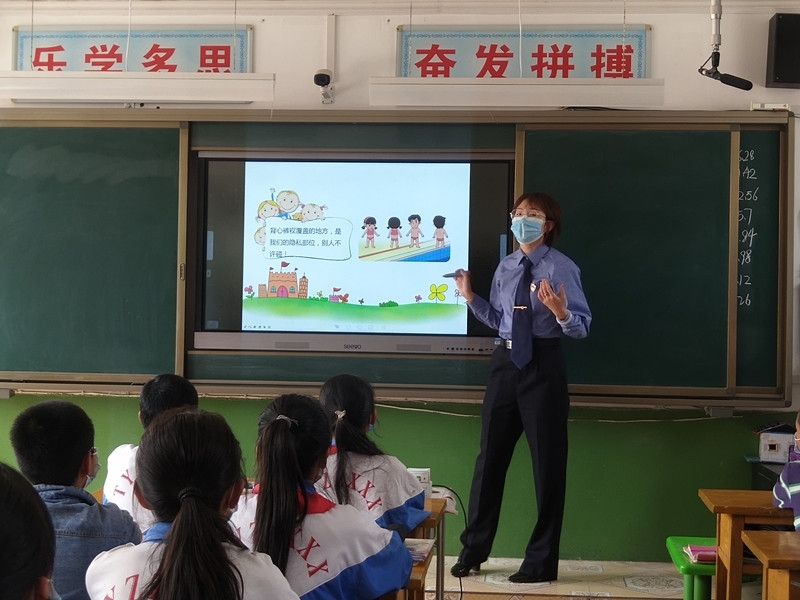 在学校,检察干警采用适当的案例、生动的语言、感性直观的PPT,为学生们上了一堂生动深刻的《法治护航未成年人健康成长》宣讲课,增强了同学们的自我保护意识,提高了自我保护能力,学习了自我保护的技巧,受到师生的欢迎。