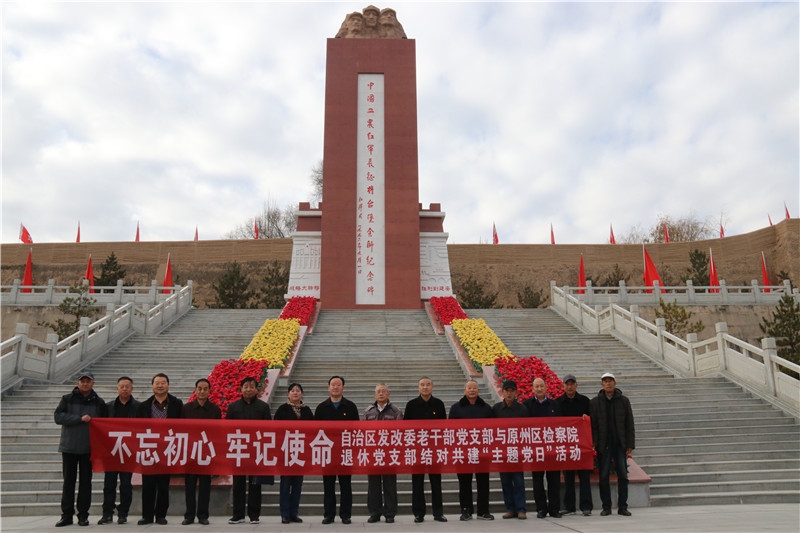 随后,两个支部组织部分退休党员前往西吉将台堡红军长征纪念园红色教育基地,开展了以“不忘初心 牢记使命”为主题的主题党日活动,活动中通过重温入党誓词、参观红军长征纪念馆,让退休党员深刻领悟了革命先烈对党忠诚、敢于担当、勇于牺牲、敢为人先的伟大奉献牺牲精神和不忘初心使命的家国情怀,让红色基因生生不息、永续传承。