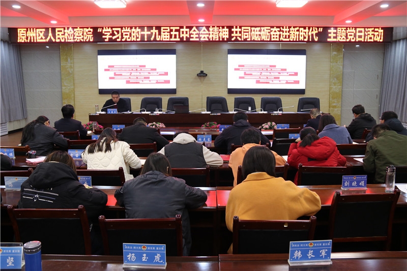 为全面深入学习领会十九届五中全会精神,激励广大党员和检察干警忠诚履职、担当作为、奋勇前行。11月30日下午,原州区检察院召开“学习党的十九届五中全会精神 共同砥砺奋进新时代”主题党日活动。