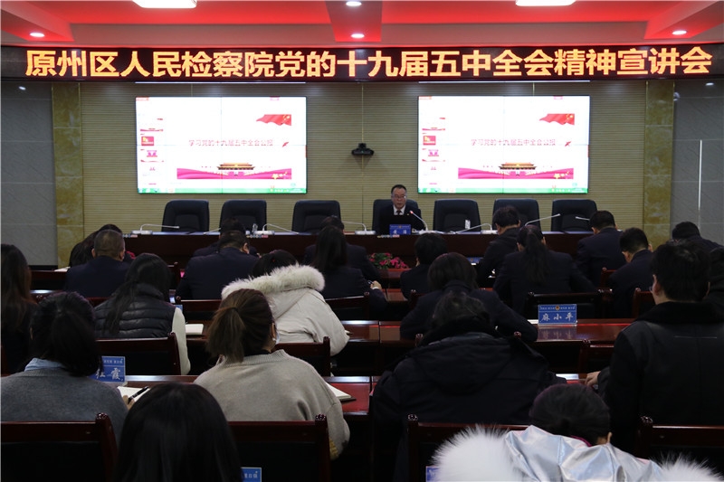 为深入系统的学习党的十九届五中全会精神,12月15日上午,原州区人民检察院举办了学习党的十九届五中全会精神专题讲座,院党组书记、代理检察长黄浩同志为全体干警进行专题辅导。