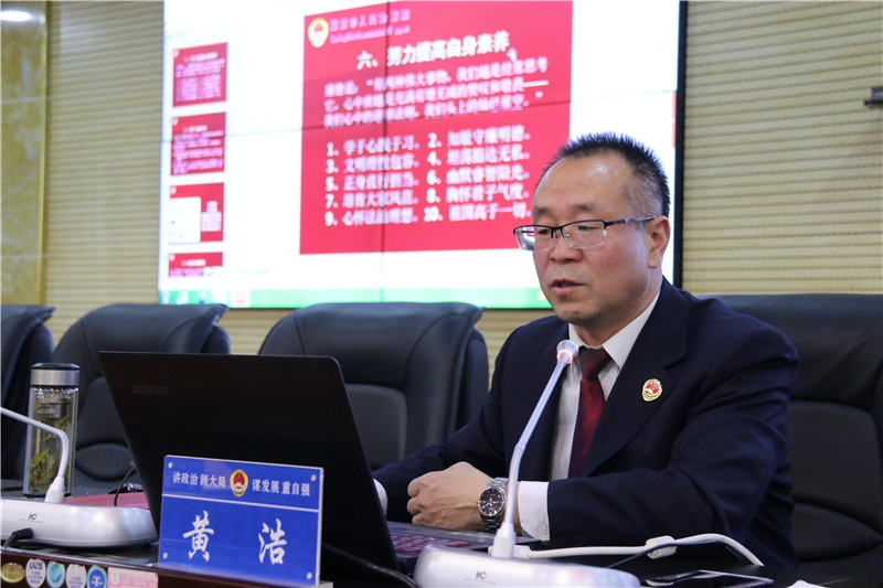 黄浩同志结合阐释会议精神,强调指出,全体干警思想上要热爱党热爱祖国、热爱检察事业,懂得知耻守廉明德,心怀法治理想。品格上要正身直行,敢于担当,做到坦荡豁达无私。行为上要脚踏实地,雷厉风行,做到学于心践于行。
