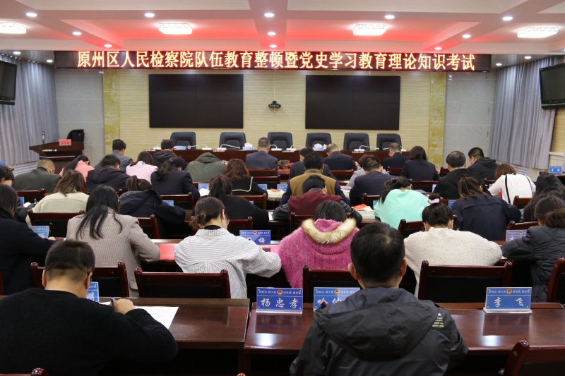 自队伍教育整顿开展以来,原州区人民检察院高度重视队伍的学风建设,为检验和巩固近日来干警学习成效,深入推进检察队伍教育整顿工作走深走实,结合关于党史学习教育要求,3月23日下午,原州区人民检察院组织开展了队伍教育整顿及党史学习教育理论知识考试,全体干警参加考试。