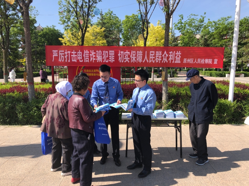 为深入推进政法队伍教育整顿走深走细走实,进一步推动“我为群众办实事”实践活动落地见效,坚决从源头遏制电信网络诈骗犯罪高发态势,切实保障人民群众财产安全,提高人民群众防范意识。5月17日,原州区人民检察院在固原市博物馆广场开展了“世界电信日”防范电信网络诈骗宣传活动。