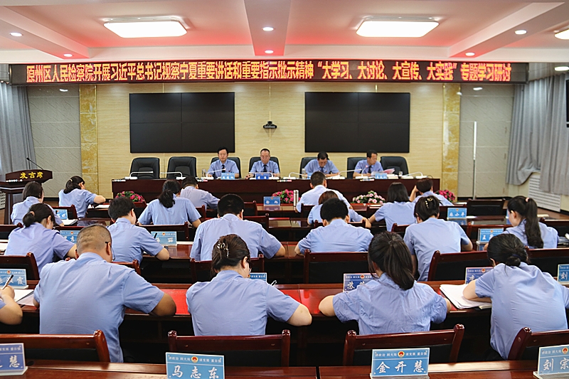 为深入开展习近平总书记视察宁夏重要讲话和重要指示批示精神“大学习、大讨论、大宣传、大实践”活动,8月12日,原州区人民检察院开展了专题学习研讨会,全体干警参加。