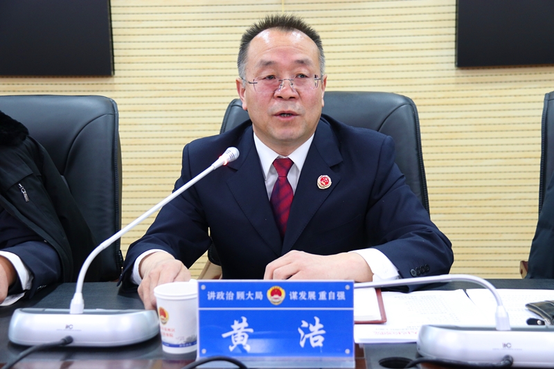 黄浩检察长要求:一要提高政治站位,强化思想认识。深入学习贯彻落实党的十九届六中全会精神和习近平法治思想,坚持党对政法工作的绝对领导,以高度的政治自觉、法治自觉和检察自觉将上级的各项决策部署不折不扣落实到工作中。二要加强思考谋划,精准安排部署。逆水行舟、不进则退,各部门要根据职责分工,明确目标定位,迅速分解任务,制定本部门的工作清单,以时不我待、只争朝夕的精神为2022年各项工作开展打下坚实基础。三要强化纪律规矩意识,持续转变作风。从思想上认清形势,站在为组织负责、为家庭负责、为自己负责的角度上,严格落实党风廉政建设各项规定,严格落实中央八项规定精神及其实施细则,严格要求自己,主动适应严的常态,增强纪律意识,不触红线、不越底线,持续深入转变工作作风,严守纪律,遵守制度,踏实工作,确保风清气正。四要克服麻痹思想,严抓疫情防控。全体干警要深刻认识到当前疫情的严峻形势,切实增强政治意识和大局意识,坚决把思想和行动统一到党中央和各级党委关于当前疫情防控的决策部署上来,始终紧绷疫情防控这根弦,不能有丝毫麻痹思想和侥幸心理,减少“两节”期间人员流动和聚集,全力以赴做好疫情防控各项工作。