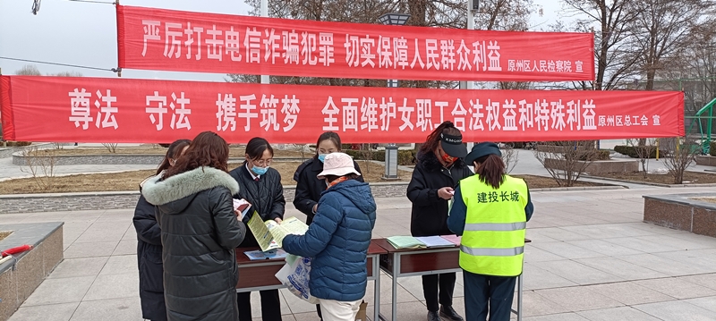 3月3日,原州区人民检察院组织女干警在人民广场开展“建设法治宁夏 巾帼在行动——送法给她”集中宣传活动,主要就《民法典》《中华人民共和国婚姻法》《中华人民共和国妇女权益保障法》《反家庭暴力法》及防范电信诈骗等妇女维权法律法规知识进行宣传,帮助婚姻家庭矛盾纠纷化解,进一步增强了广大妇女遵纪守法、依法维护自身权益的水平和能力,以家庭平安推进社会平安。、