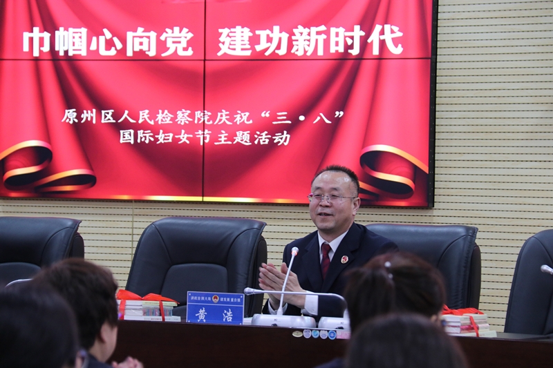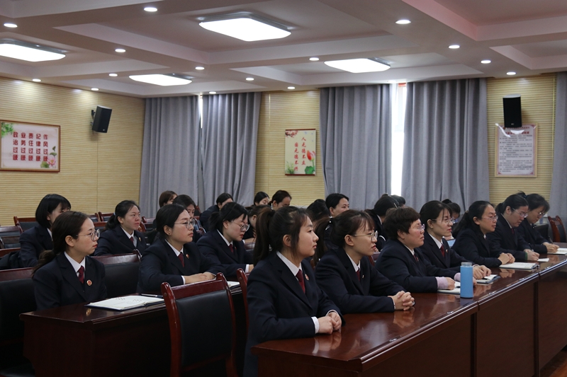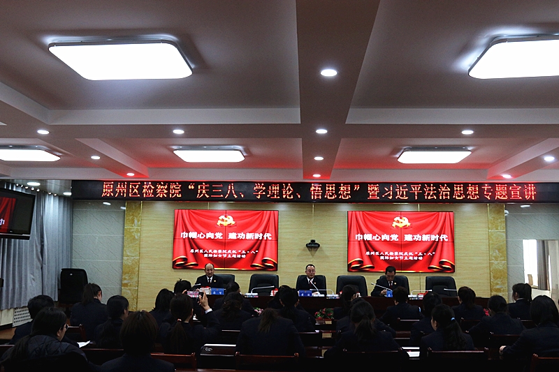 3月8日上午,组织女干警们集中学习了习近平法治思想和党的十九届六中全会精神,院党组书记、检察长黄浩同志为女干警解读党的十九届六中全会精神、宣讲习近平法治思想,要求女干警们在习近平新时代法治思想的指引下,把理论内化于心外化于行,与新时代同行、为新目标奋斗、在新征程建功、做新时代新女性。