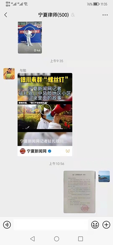近期由于宁夏疫情出现反弹,防疫形势严峻,固原市原州区人民检察院综合业务部以政法队伍教育整顿为抓手,以为民办实事目标,推出一系列为民服务举措,做到“能服务、会服务、服务好”,切实解决疫情期间律师接待服务工作。