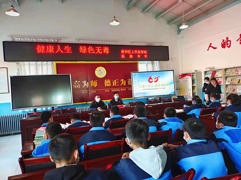 为巩固学校毒品预防教育成果,扩大禁毒宣传覆盖面,近日,原州区人民检察院走进头营镇杨郎中学开展“健康人生 绿色无毒”主题宣讲活动,进一步提高青少年识毒、防毒、拒毒的意识和能力,全力推进平安校园建设。