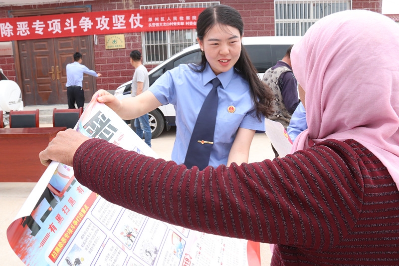 为深入推进扫黑除恶专项斗争,不断加大扫黑除恶专项斗争的宣传力度,切实提高群众对扫黑除恶专项斗争工作的知晓率及参与率,持续营造人人喊打的氛围,坚决取得扫黑除恶专项斗争压倒性胜利。6月11日,原州区人民检察院干警在走村入户开展精准扶贫工作的同时,召开村民大会,就开展扫黑除恶专项斗争的历史背景、目标任务、重要意义、打击重点进行进一步宣传发动。