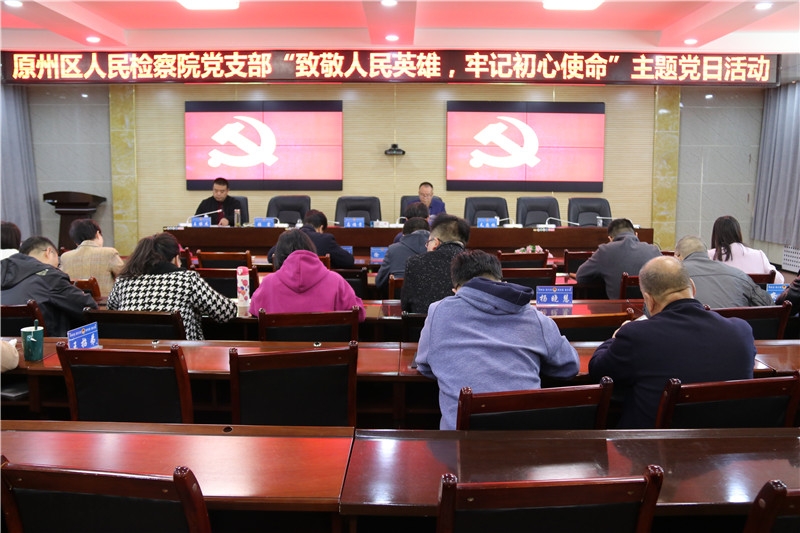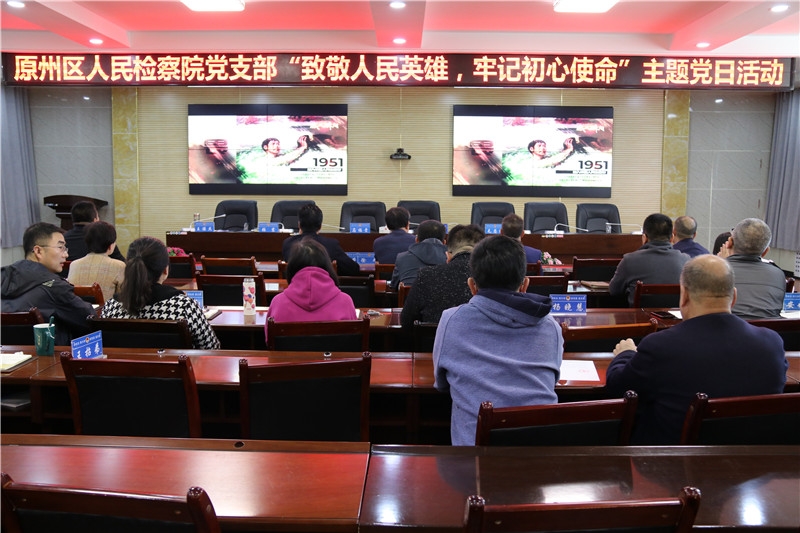 为学习和弘扬中国人民志愿军伟大爱国主义精神和革命英雄主义精神,引导党员干部传承红色基因,树立崇尚英雄、继承遗志、不断奋进的良好风尚。10月28日上午,原州区人民检察院党支部开展了“致敬人民英雄,牢记初心使命”主题党日活动。活动由党支部书记王保杰同志主持,全体党员干警参加。本次主题党日活动共有三项内容。