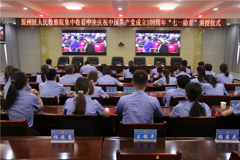 最后,原州区检察院党组书记、检察长黄浩作讲话。指出,百年征程波澜壮阔、百年初心历久弥坚。立足新起点、展望新征程,检察干警要不忘初心、牢记使命,以习近平新时代中国特色社会主义思想为指引,不断增强“四个意识”,坚定“四个自信”,做到“两个维护”,深刻牢记检察职责使命,不断砥砺奋进,再立新功。要求,全体干警以高度的政治自觉、法治自觉、检察自觉投入到党史中感悟初心使命,汲取精神力量,更加自觉地坚持党对检察工作的绝对领导,更加自觉地提升法律监督品质,更加自觉地锻造过硬检察队伍,更加自觉地服务原州经济社会高质量发展。强调,以29名“七一勋章”获得者和我院先进为榜样,坚定信念、勇于担当、务实苦干,以人民为中心,以实际行动实现党的事业薪火相传、永续发展。结合党史学习教育、政法队伍教育整顿,持续锤炼忠诚干净担当的政治品格,扛起新使命、展现新担当、实现新作为,为建设经济繁荣、民族团结、环境优美、人民富裕的美丽新宁夏原州篇章提供坚强的检察保障!