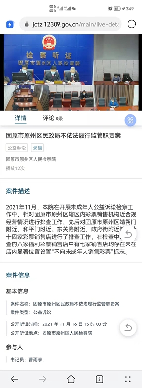 为维护众多未成年人利益,争取社会广泛支持,加强未成年人保护,原州区人民检察院切实加强组织领导,转变司法理念,改进办案方式,增强工作主动性,2021年11月16日,分别对校园周边道路交通安全、彩票销售点在显著位置设置未成年人警示标识、医疗机构落实强制报告制度的3件侵害未成年人公益诉讼案件以公开听证形式磋商结案。
