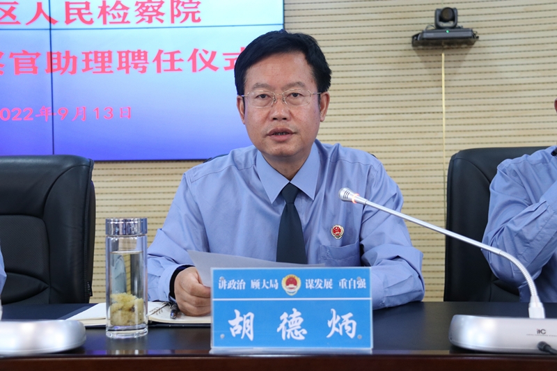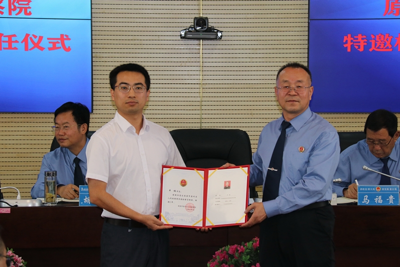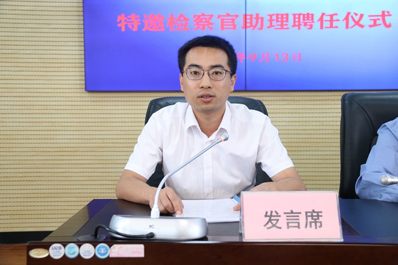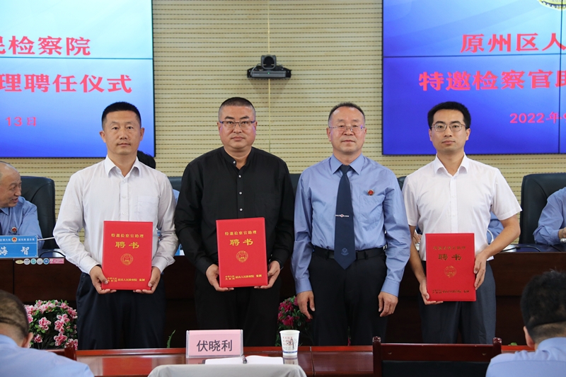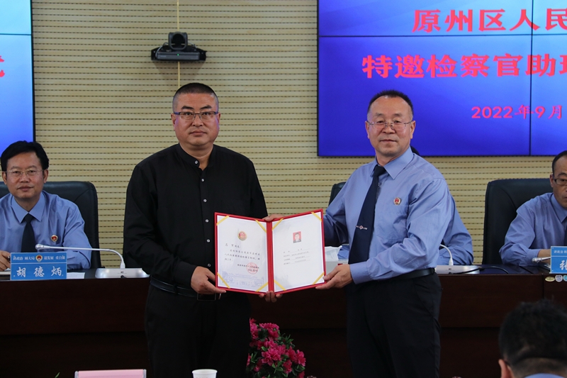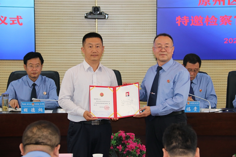 仪式上,原州区人民检察院党组成员、副检察长胡德炳宣读了《原州区人民检察院关于聘请特邀检察官助理的决定》。院党组书记、检察长黄浩向受聘检察官助理颁发聘书。