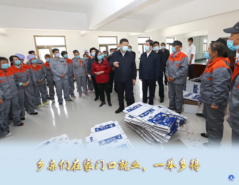 在村里,习近平总书记特地考察了扶贫车间:“不是搬过来盖几间漂亮房子就行了。乡亲们搬出来后,要稳得住、能致富,才能扎下根。”