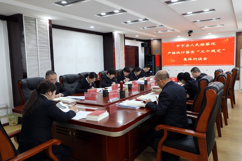 会上,集体学习了《领导干部干预司法活动、插手具体案件处理的记录、通报和责任追究规定》《司法机关内部人员过问案件的记录和责任追究规定》《关于进一步规范司法人员与当事人、律师、特殊关系人、中介组织接触交往行为的若干规定》《政法队伍教育整顿典型案例警示录》相关内容,综合业务部通报了我院填报“三个规定”等重大事项情况,党组书记、检察长杨莉同志就贯彻落实防止干预司法“三个规定”,结合我院工作实际提出三方面要求: