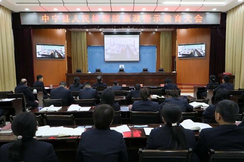 为深入开展廉政警示教育周活动,进一步强化党员干警廉洁自律意识,教育引导党员干警以案为鉴敲警钟、持之以恒强作风,不断巩固深化党史学习教育和政法队伍教育整顿成果,筑牢全体党员干警拒腐防变的思想防线,持续推进全面从严治党、全面从严治检向纵深发展。4月2日下午,中宁县人民检察院召开廉政警示教育大会,院班子成员及全体干警参加会议。