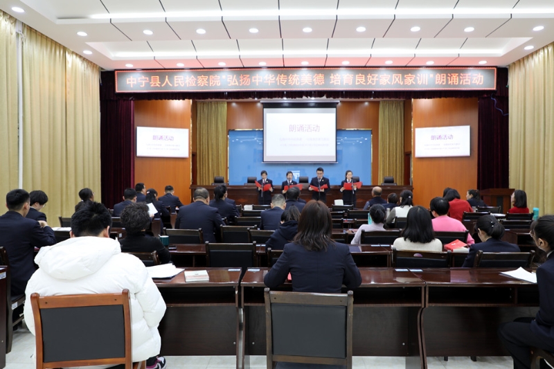 为深入贯彻落实习近平总书记关于家风建设的重要讲话精神,积极培育和践行社会主义核心价值观,大力弘扬家国情怀、倡导新时代文明新风,进一步增强检察干警建设廉洁文明家风的思想认同、文化认同、情感认同和行动自觉,12月21日,中宁县人民检察院开展“弘扬中华传统美德,培育良好家风家训”朗诵活动。