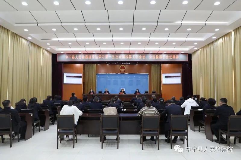 2月10日,中宁县人民检察院通召开全院干警大会,传达学习了习近平总书记关于政法工作的重要指示精神、中央政法工作会议精神、第十五次全国检察工作会议精神、自治区党委政法工作会议精神、自治区党委常委会听取自治区检察院党组工作汇报、自治区检察院党组书记、检察长时侠联在全区检察长会议上的讲话精神。会议由党组书记、检察长杨莉主持,全院干警参加了会议。