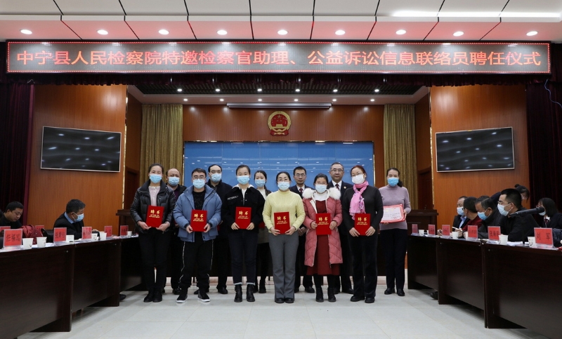 1月14日,中宁县人民检察院举行首批特邀检察官助理、公益诉讼信息联络员聘任仪式,开启中宁检察机关以“外脑”赋能助推办案的新模式。此次聘任仪式,旨在深入贯彻最高人民检察院《行政机关专业人员兼任检察官助理工作办法(试行)》和中卫市人民检察院《检察公益诉讼信息联络员工作办法(试行)》,进一步推进检察监督与行政执法良性互动,以补短板的姿态、强本领的态度,切实把提升专业水平和主动接受外部监督相结合,实现双赢多赢共赢。中卫市生态环境局中宁分局、中宁县市场监督管理局等7家行政机关的专业人员被聘为中宁县人民检察院首批特邀检察官助理;中宁县民政局、公安局、团县委等20家行政机关、群团组织的专业人员被聘为中宁县人民检察院首批公益诉讼信息联络员。受邀的7家行政机关、群团组织的领导同志应邀出席聘任仪式。