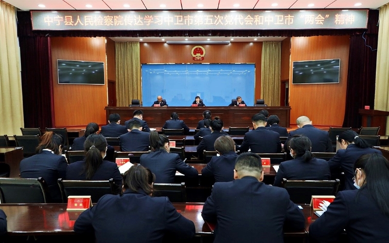 中卫市第五次党代会和中卫市“两会”胜利闭幕后,中宁县人民检察院通过召开党组会、党组理论中心组学习会、党员大会、全院干警大会,第一时间专题传达学习市第五次党代会和市“两会”精神,并围绕学习宣传落实大会精神作专题研讨。会议指出,中卫市第五次党代会和中卫市“两会”是一次高举旗帜、牢记嘱托、凝心聚力、团结奋进、风清气正的大会,大会立足新发展阶段、贯彻新发展理念、融入新发展格局,为中卫发展确立了新的发展目标,举措有力、鼓舞士气,为推动检察工作高质量发展提供了根本遵循。