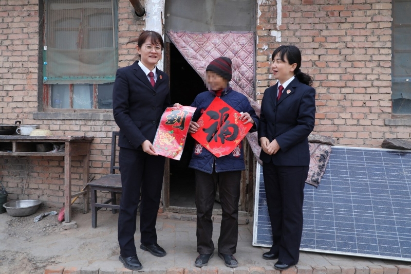 在第五检察部依法调查后,经中宁县人民检察院研究决定,对两位老人给予1万元的司法救助,为他们解决所面临的急迫困难。春节将至,中宁县人民检察院党组始终惦记着这两位背井离乡的老人,1月25日,院党组书记、检察长张月玲同志一行为两位老人送去了救助金、生活必需品和一副红红的春联、一副喜庆的“福”字。看着救助金和红彤彤的春联,老人激动和感激之情溢于言表,老大爷说:“我们怎么都没想到,身在他乡,只是将自己的境况告诉了偶尔过路的一位检察官,竟能得到检察机关这样温暖的关心和热心的帮助。”