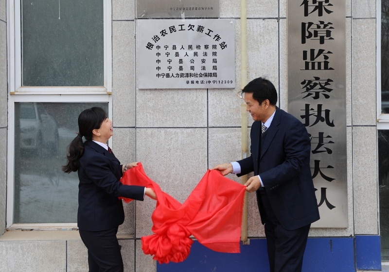 1月26日,中宁县人民检察院“驻法院民事行政检察监督办公室”以及由中宁县人民检察院牵头、中宁县人民法院、中宁县公安局、中宁县司法局、中宁县人力资源与社会保障局为成员单位共同组建的“根治农民工欠薪工作站”举行了揭牌仪式。标志着“驻法院民事行政检察监督办公室”及“根治农民工欠薪工作站”正式启用。