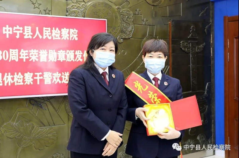 在热烈的掌声中,中宁县人民检察院党组书记、检察长杨莉为白志明同志、毛丽琴同志颁发高检院制发的“检察荣誉勋章”和证书,并送上退休纪念品。二位“老检察”饱含深情地畅叙了检察情、抒发了新感悟、展望了好远景,表达了对检察事业深深地热爱,那句“无悔为检察事业奉献一生”让在座干警无不动容。参会干警纷纷发表了感言,并为退休干警写留言送祝福。
