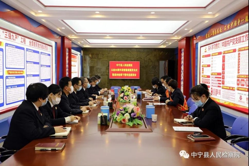 为深入贯彻习近平总书记关于激励干部担当作为的重要指示精神,充分肯定长期奋战在检察战线上老同志的积极贡献,激励全体干警大力弘扬不忘初心、薪火相传的优良传统和作风,1月20日上午,中宁县人民检察院举行“从检30周年荣誉勋章颁发仪式暨退休检察干警欢送座谈会”。会议由党组成员、副检察长马骅主持,班子成员、各内设部门负责人、部分干警代表参加。