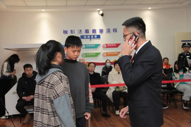 “模拟法庭”活动中,第六中学的学生们分别扮演了审判员、公诉人、辩护人等角色,审理一起张大强涉嫌故意伤害案。庭审过程中,参演者严格遵照实际庭审的程序进行,表演深刻真实,情感丰富,场景高度还原,现场庄严肃穆。通过公诉人、辩护人、合议庭成员依次入庭、法庭调查、举证质证、法庭辩论、当庭宣判等环节,完整还原案件经过,生动直接的让学生们了解到更多法律知识。